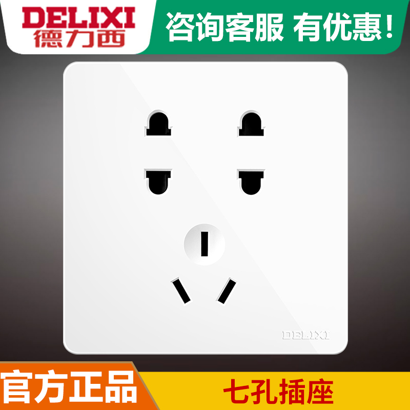 Delixi switch socket flat plate four-hole seven-hole socket 7-hole two-two-three-plug panel concealed 86 type