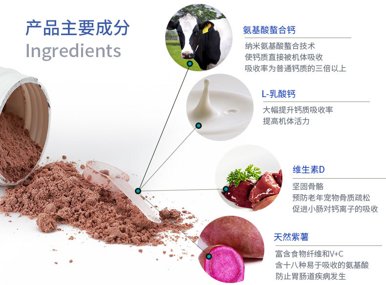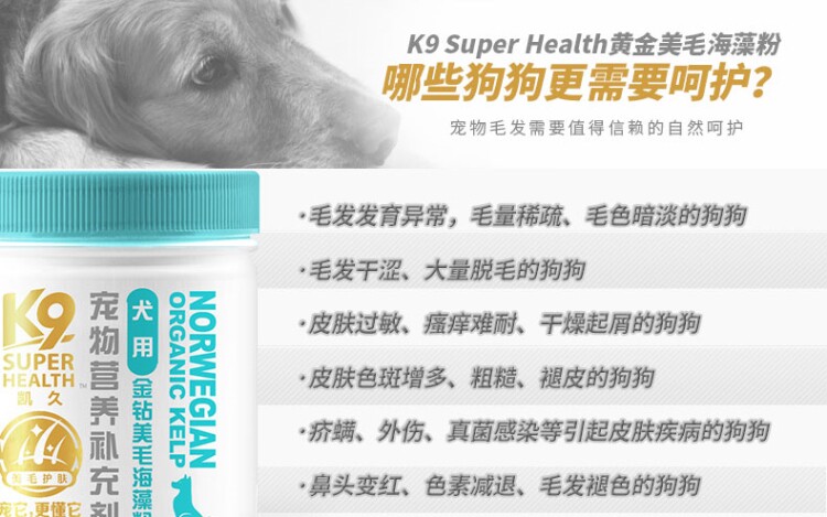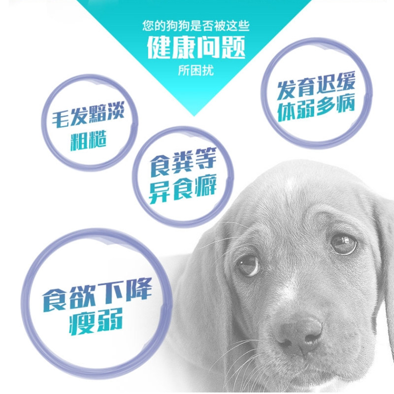 180 grams of probiotics for dogs 180 grams of golden diamond hairy seaweed powder for dogs 180 grams of multivitamins and trace elements for dogs 150 grams of chelated calcium powder for dogs