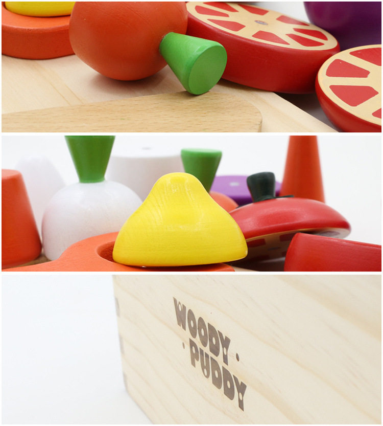 Kids wooden simulation kitchen toy cooking fruit pizza housecake set vegetables boy girl and girl