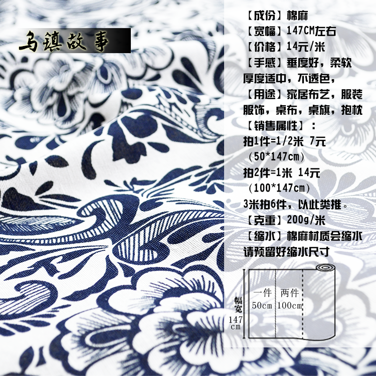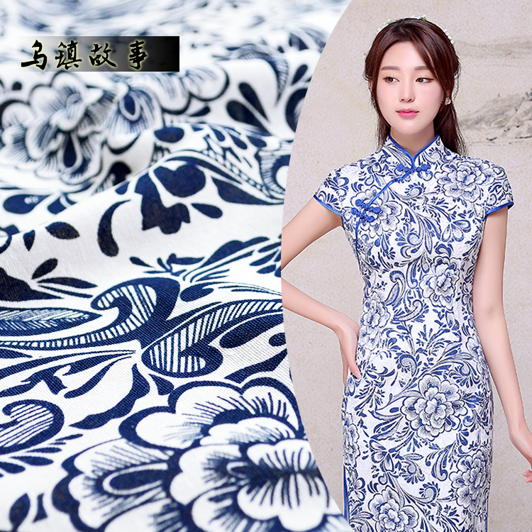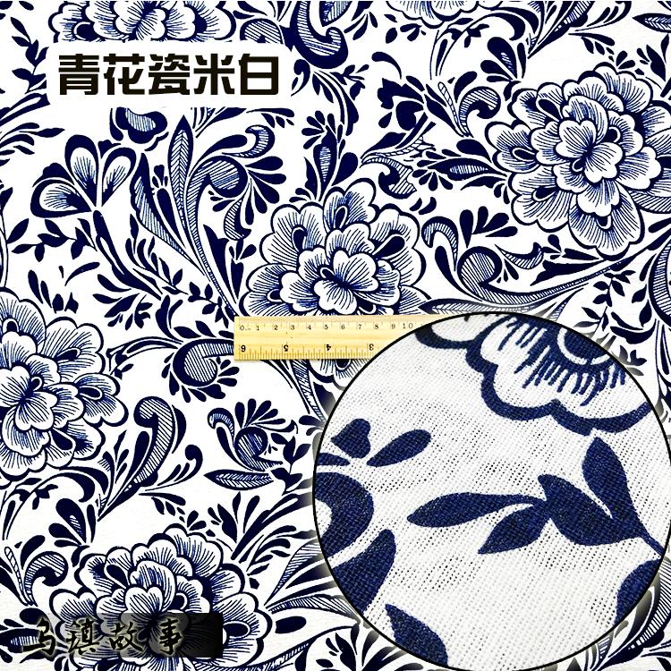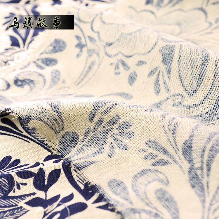 Green flower porcelain cloth retro cotton linen cloth decoration printed clothing fabrics National Wind Tea Museum Restaurant Decorative Cloth