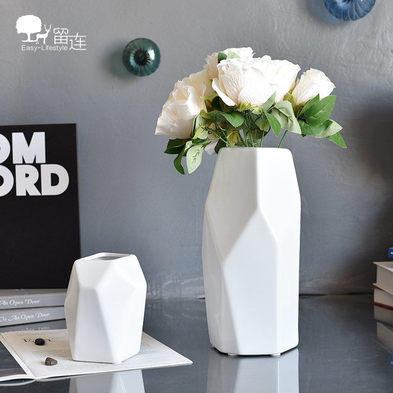 Liulian Nordic minimalist white geometric irregular ceramic vase swing piece florid parlor-like room soft adornment
