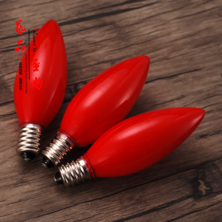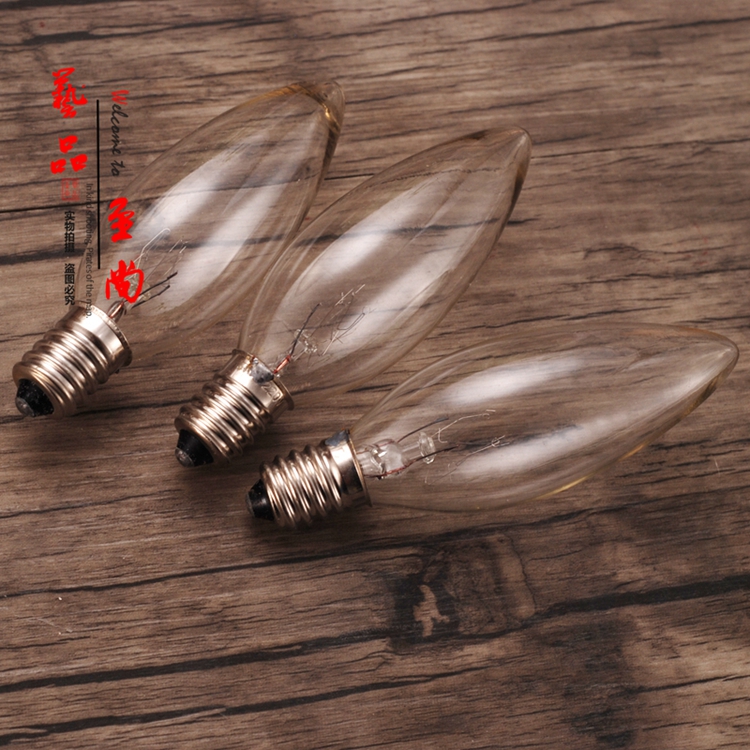 E12 small screw mouth warm light ordinary pull tail tip bulb Buddha lamp lotus bulb yellow light glass tungsten filament bulb