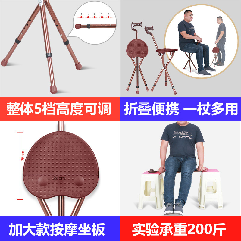Crutches chair for the elderly folding non-slip walking stick crutch bench with stool for the elderly seat can sit lightly