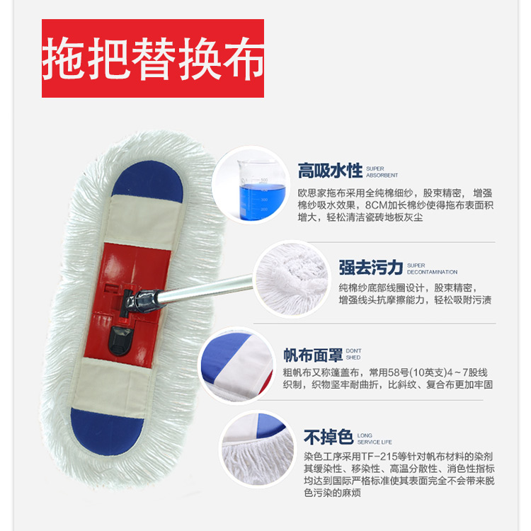 Flat mop replacement cloth cotton thread mop ground mop head dust push cover 42 flat mop sleeve flat row mop handle cloth cover 52