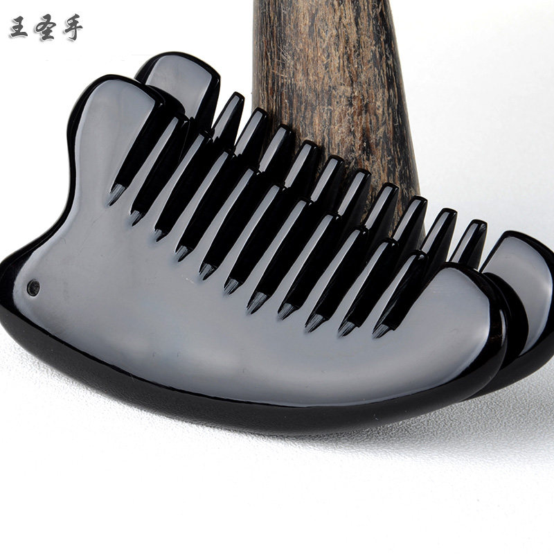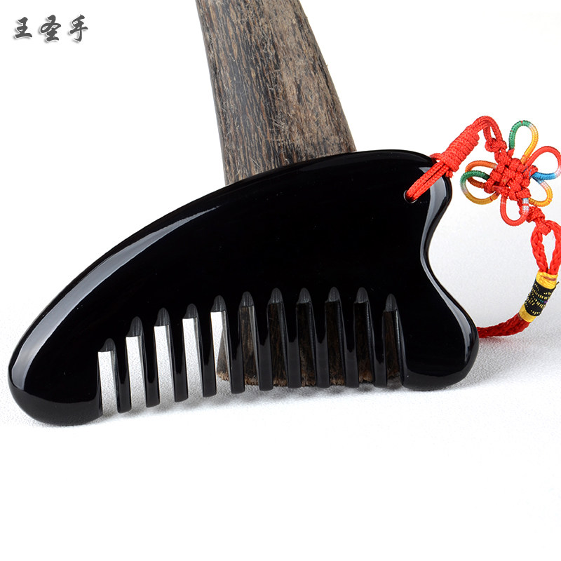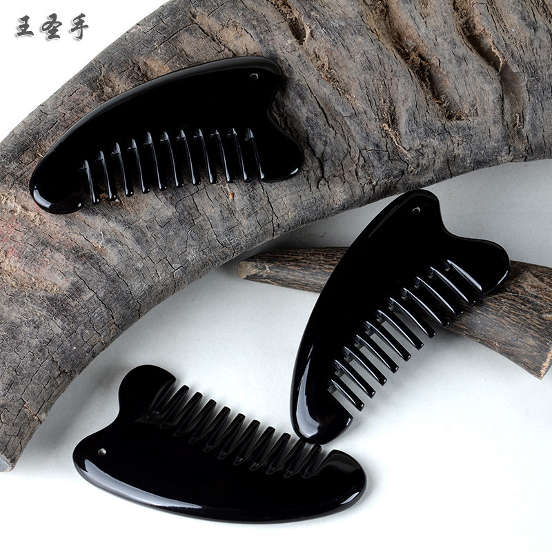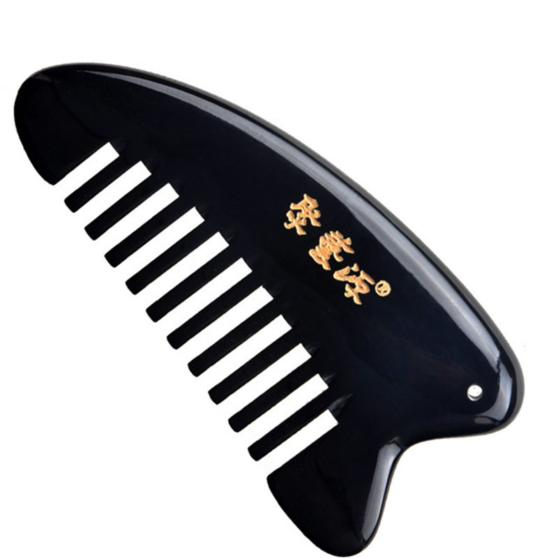 Natural black horn comb Massage comb Head meridian comb Hair care Anti-static hair loss Scalp large wide teeth