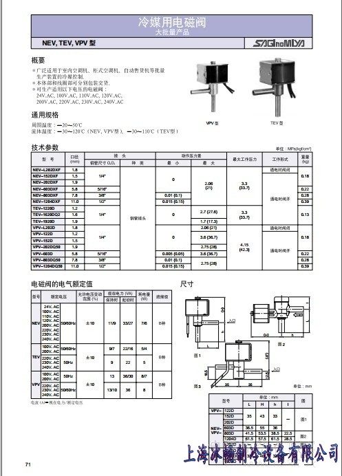 SAGINOMIYA Refrigerant solenoid valve NEV-202DXF 220V refrigerant defrosting solenoid valve original