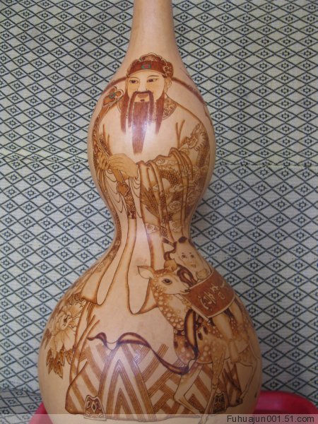 All kinds of pure handmade pyrography gourd God of Wealth and Lushen