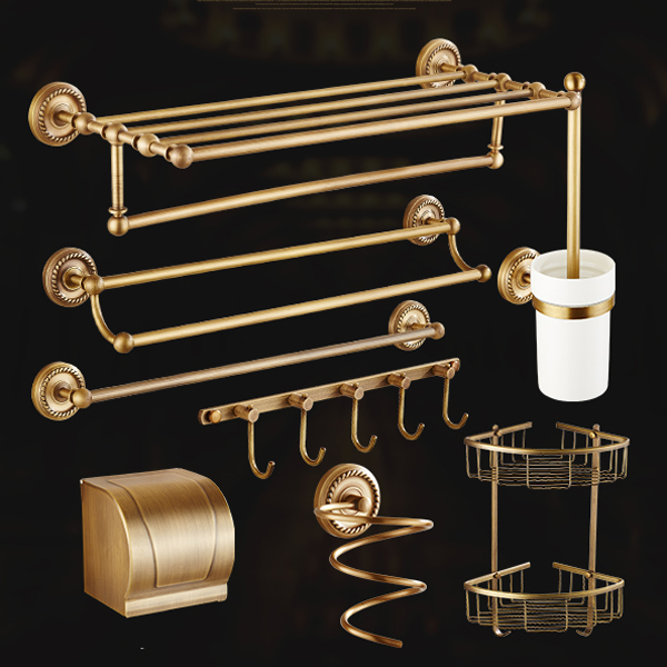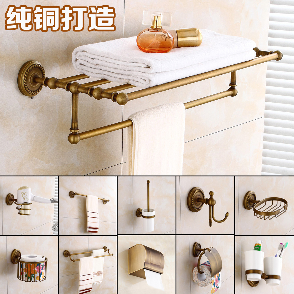 Yingerlang European antique copper towel rack set Powder room bath towel shelf Retro bathroom hardware pendant