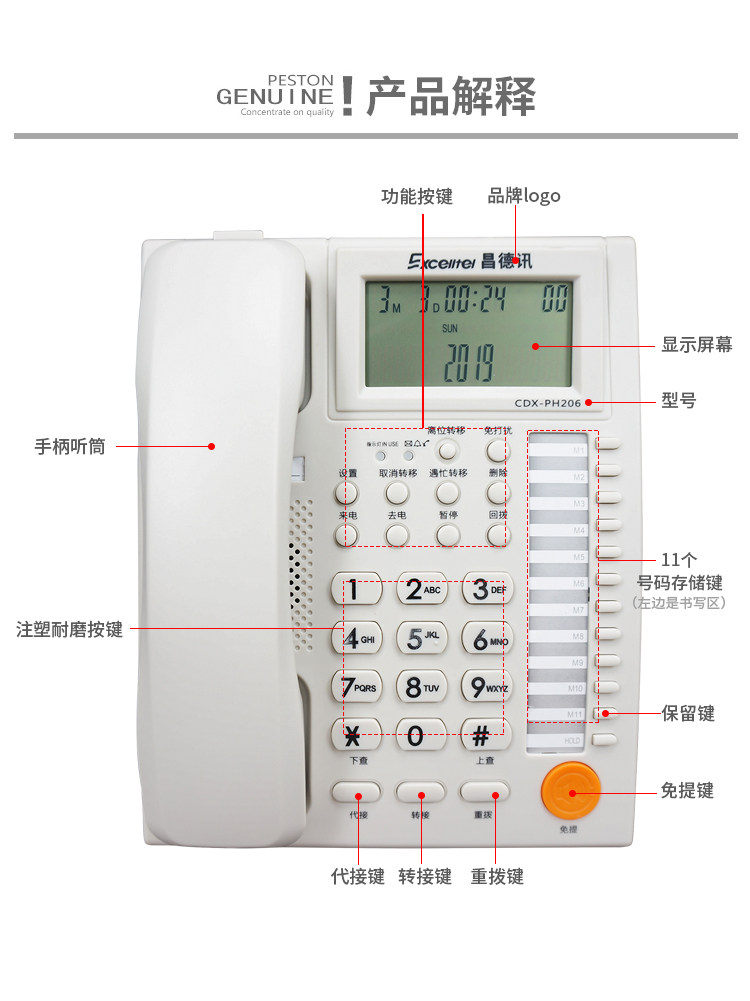 Changdexun PH206 multi-function telephone business office phone front desk switchboard speed dial telephone one-touch dial custom logo hotel telephone desk