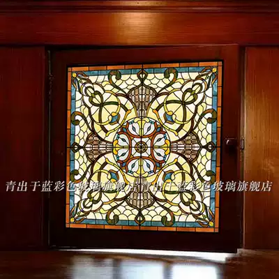 Custom-made entrance partition screen, wall wall lamp, aisle hanging ceiling, solid wood moving doors and windows, church color art glass