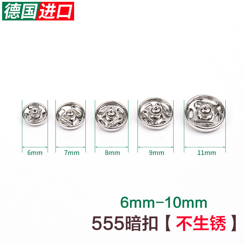 6 7 8 9 11mm Germany imported metal 555 brand imported button Qin buckle Snap button Mother and child buckle Snap button Dark snap button