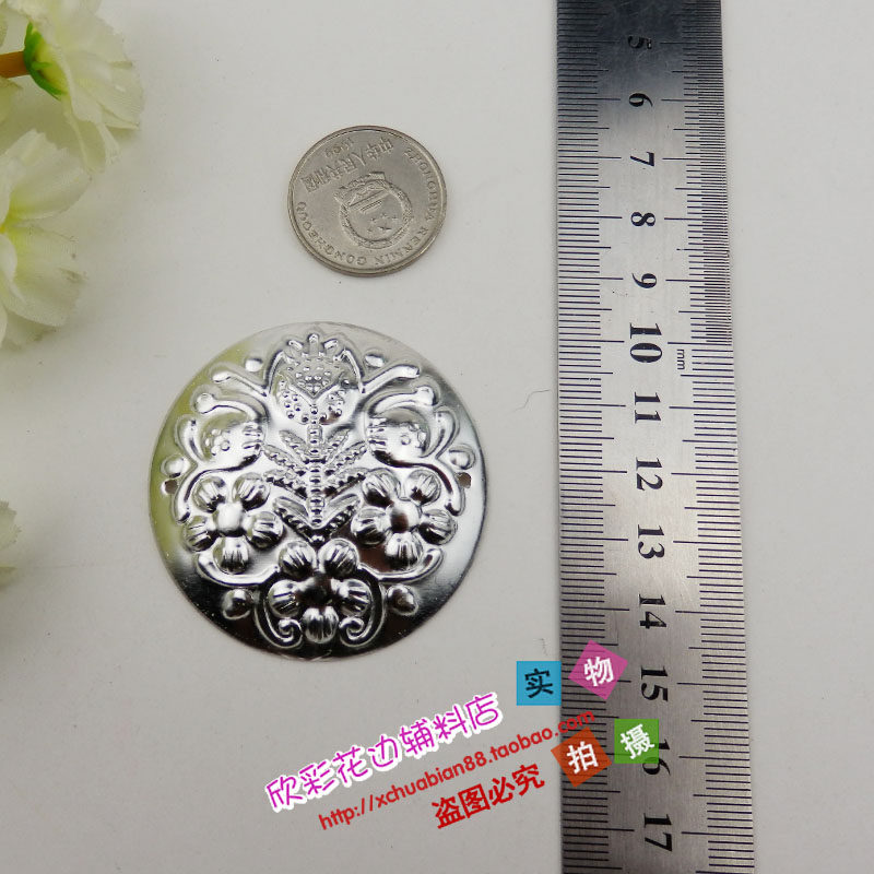 New stage performance Miao emulation silver accessories Costume Diy Material Decorations Classical pattern convex flower round cards