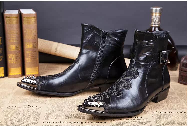 Fall Men's Tip Scatter Boots Martin Boots Han Edition Business Leisure Leather Current Shoes Fashion Personality Boots