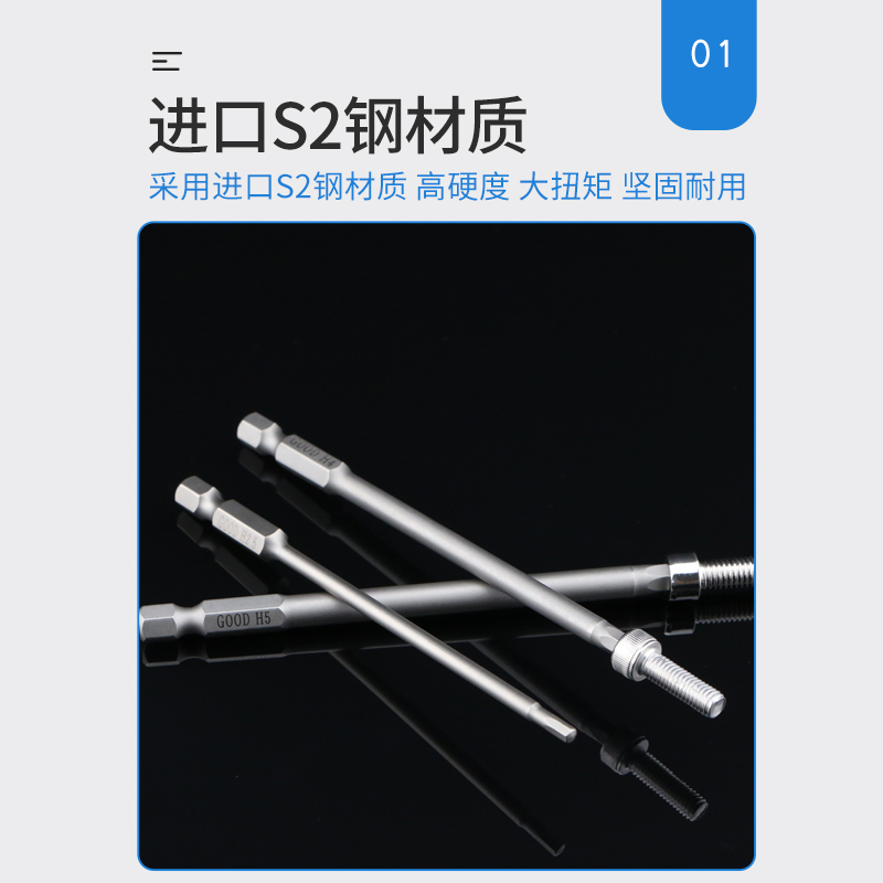 Imported pneumatic screwdriver batch head screwdriver head 1 4*100*3 5*75*H3mm 4 H5 inner hexagonal pneumatic screwdriver nozzle