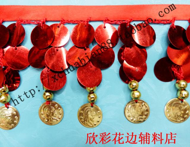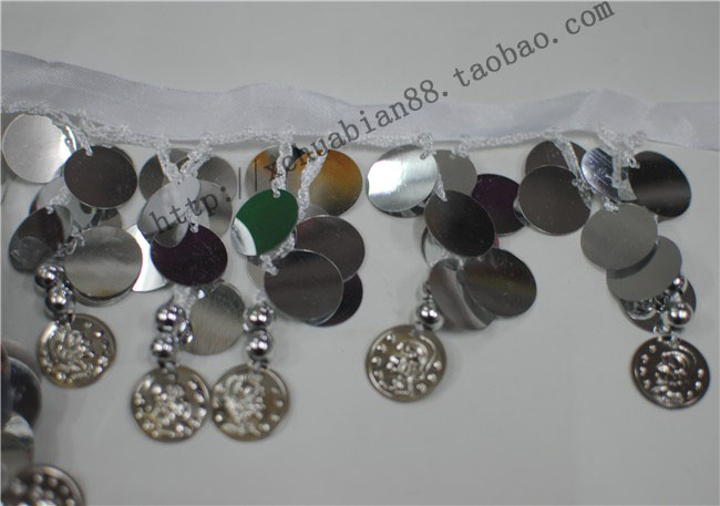 Dance waist chain belly leather dance waist lace waist accessories Silk with round sequin lace lace silk with bright sheet hanging edge Multi-color choice