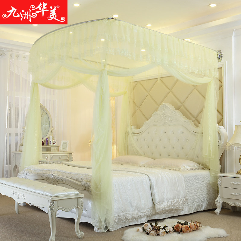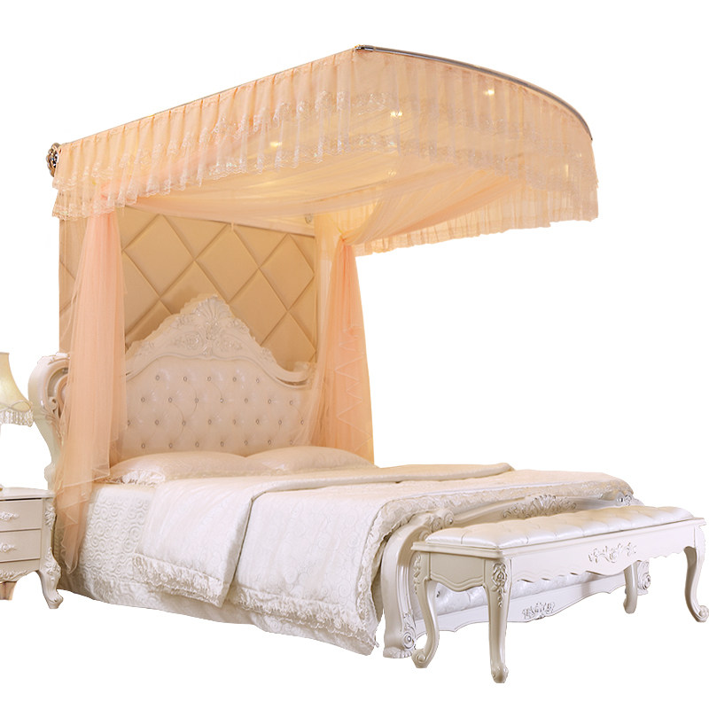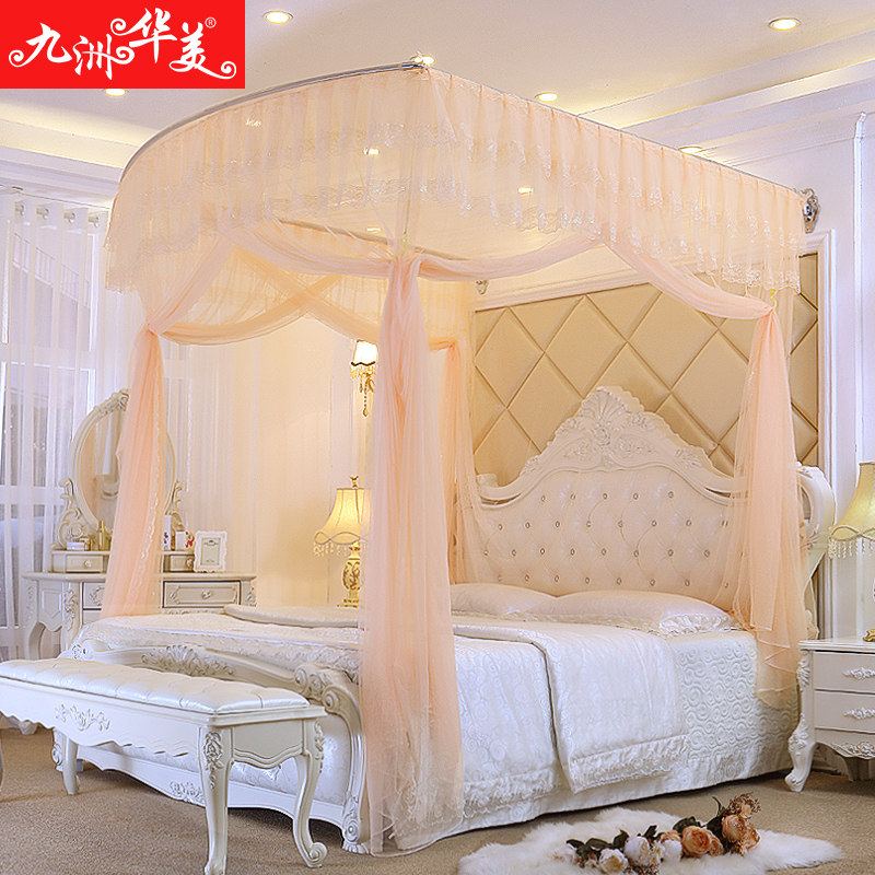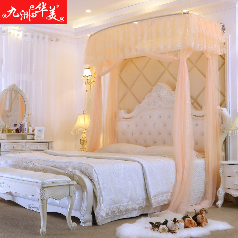 Jiuzhou Huamei retractable mosquito net wall mounted three-door palace princess thickened stainless steel frame 1 2 meters 1 5m1 8 beds