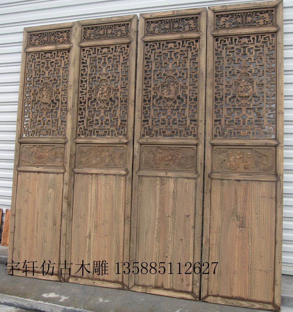 Antique gate ancient building doors and windows solid wood engraving incense Zhangmu to make old
