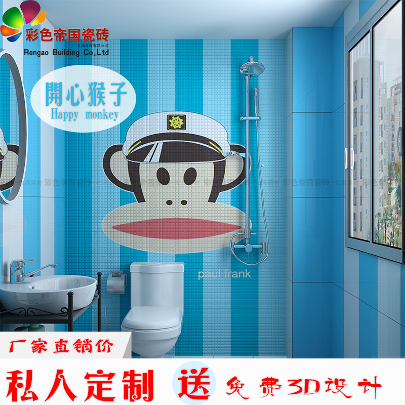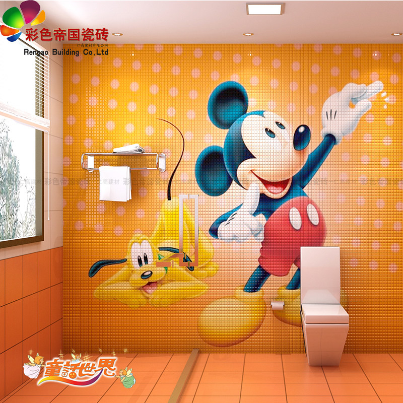 Mosaic Cartoon Characters Puzzle Tiles Red Yellow Blue Green Powder Black Floor Tiles Makeup Room Bathroom Toilet Theme Wall Brick