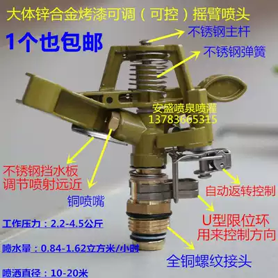Zinc alloy 4 points 6 points adjustable angle rocker nozzle Garden agricultural lawn sprinkler nozzle 360 rotary nozzle