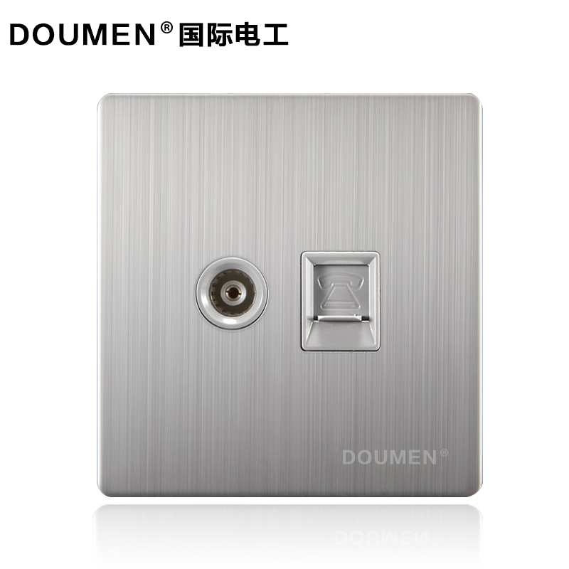 International Electrician TV with Telephone Type 86 Stainless Steel Brushed Wall Switch Socket Panel Silver