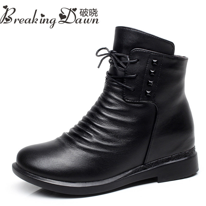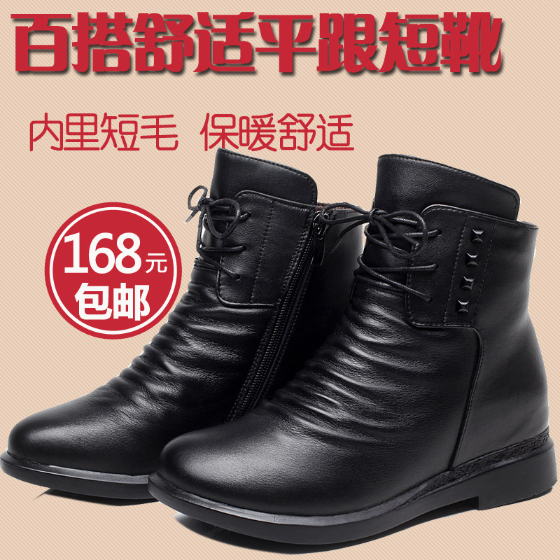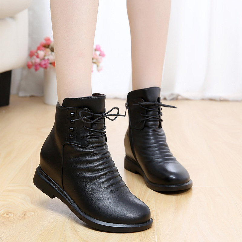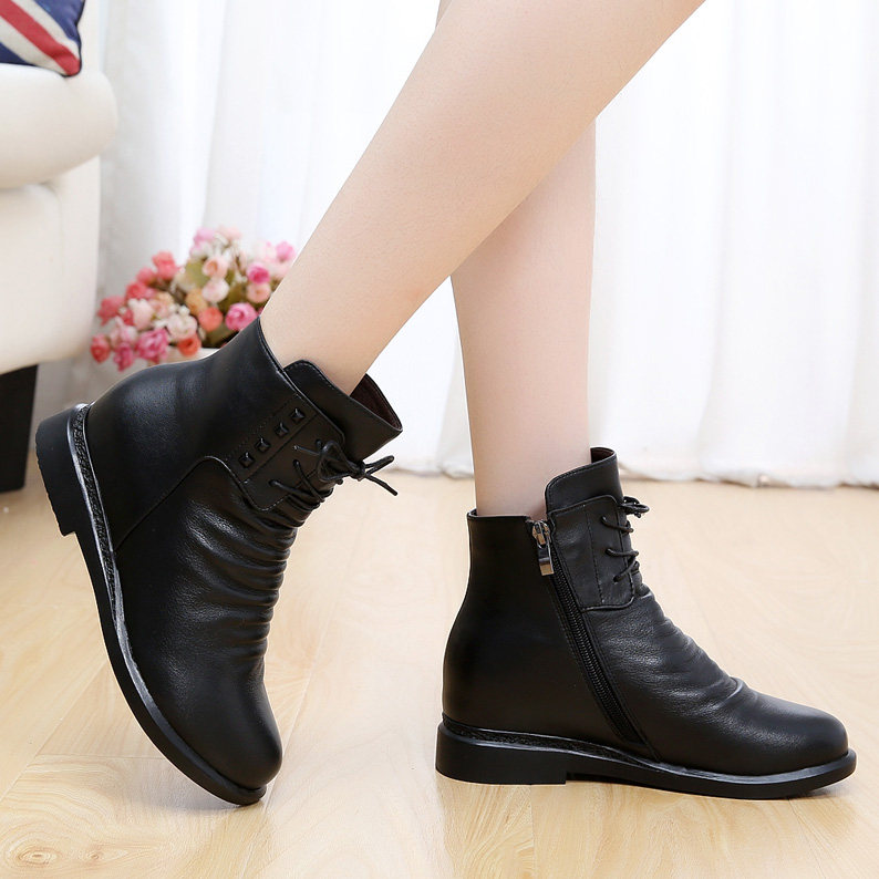 Senior leather boots women in cotton shoes in autumn winter boots warm shoes with large size women's shoes 4143