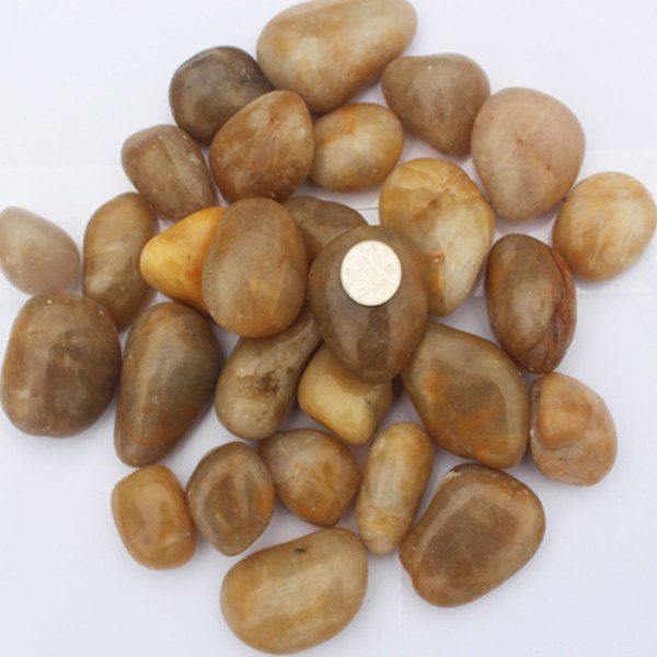Deep polished rainfed stone (yellow color) cobblestone landscaped stone transparent yellow pebble decoration Xuanguan
