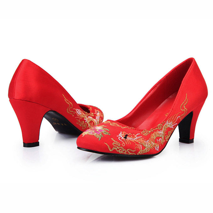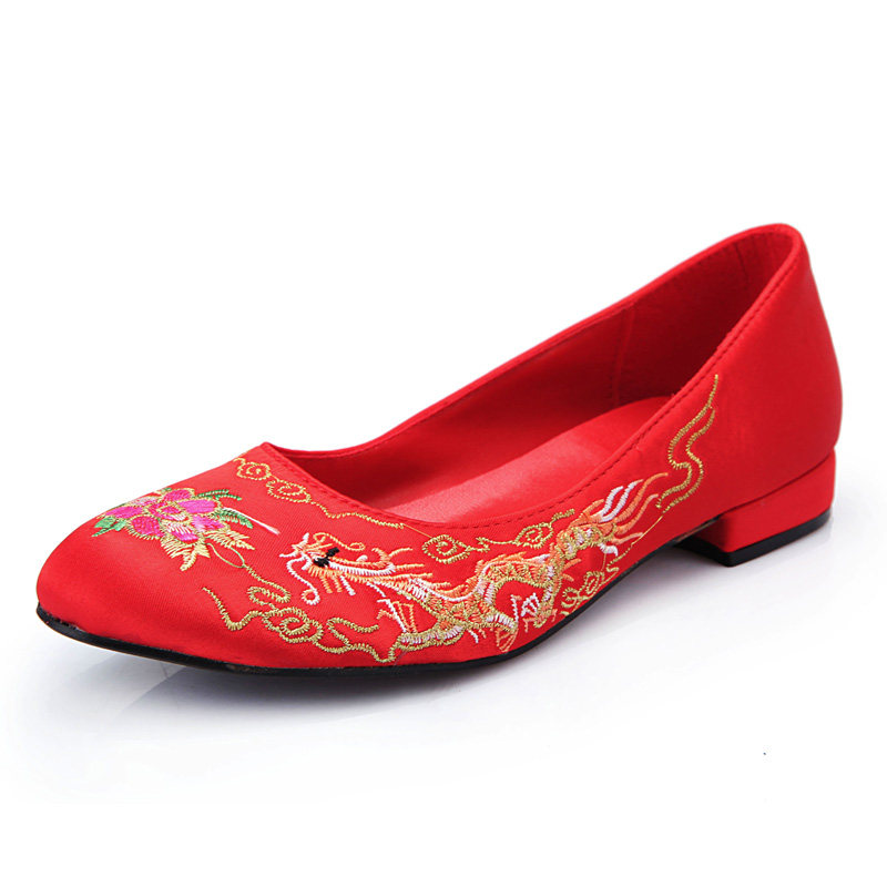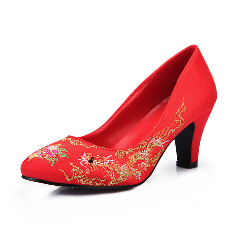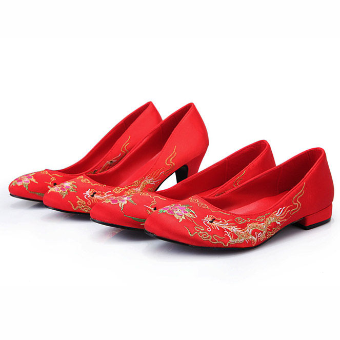 Chinese Wedding Shoes Red Dragon Phoenix Embroidered Shoes Traditional Qipao Dress Jacket with Wedding Shoes and Wedding Shoes Coarse and Female Single Shoes