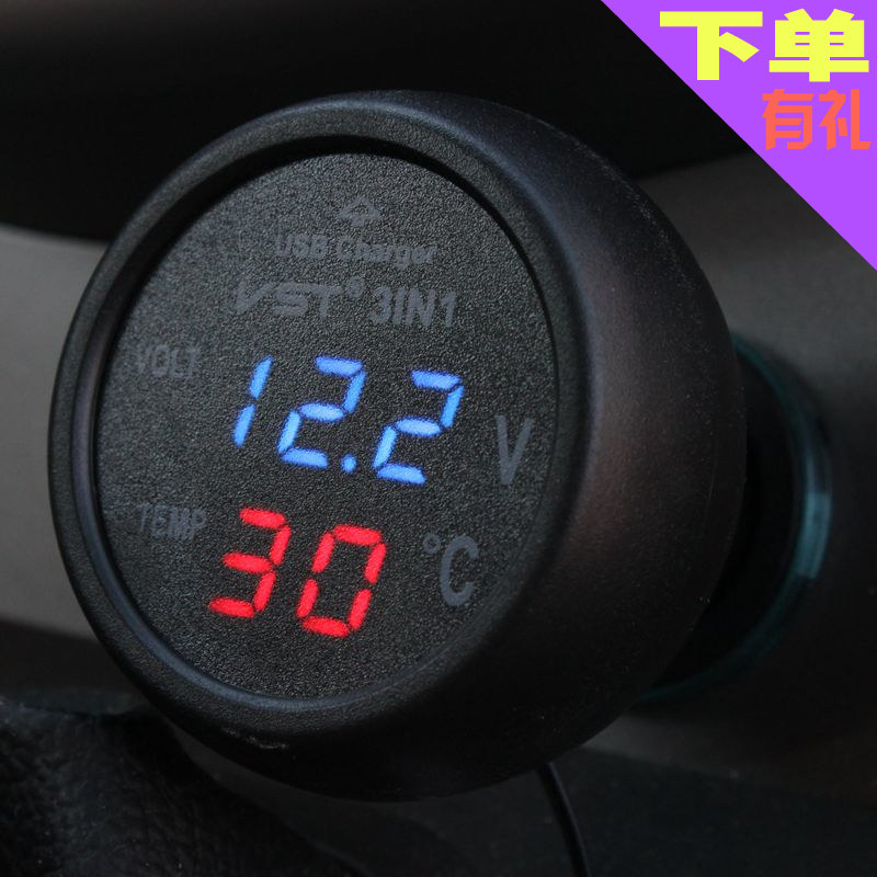 Three-in-one car thermometer Car voltage monitor USB mobile phone charger for self-driving car