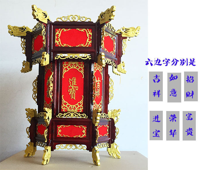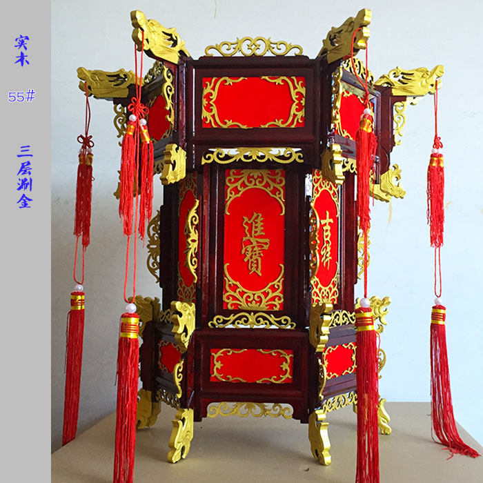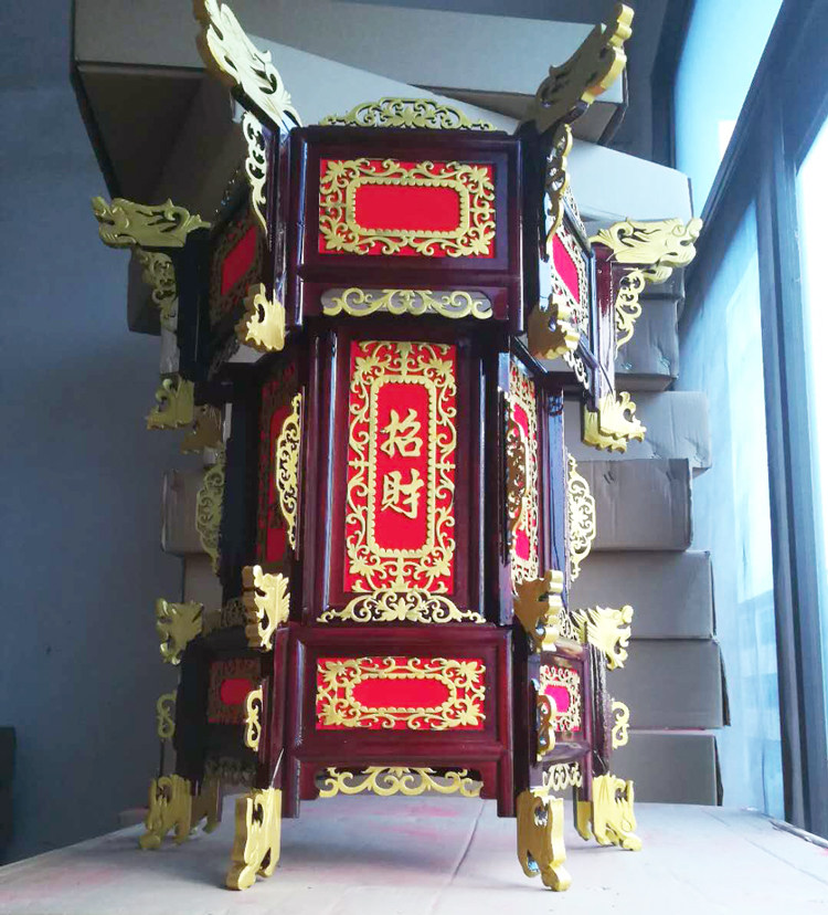 Three floors upscale luxury gold woody hexagonal antique palace lamp solid wood Chinese solid wood red lantern gate chandelie
