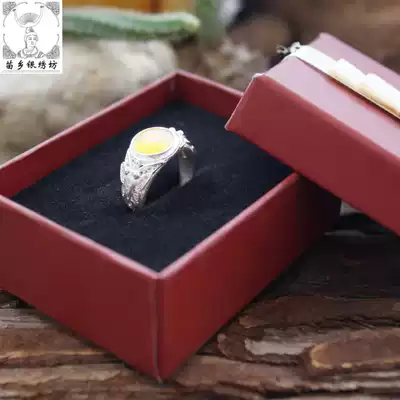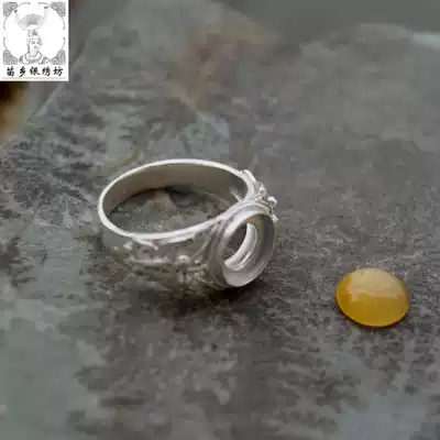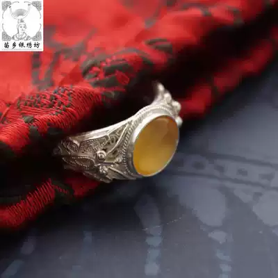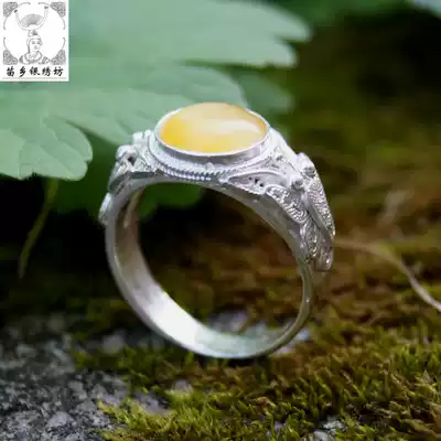Miaoxiang silver embroidery Workshop S99 handmade filigree high-end silver ring Amber gemstone ring commissioned men and women to design custom-made