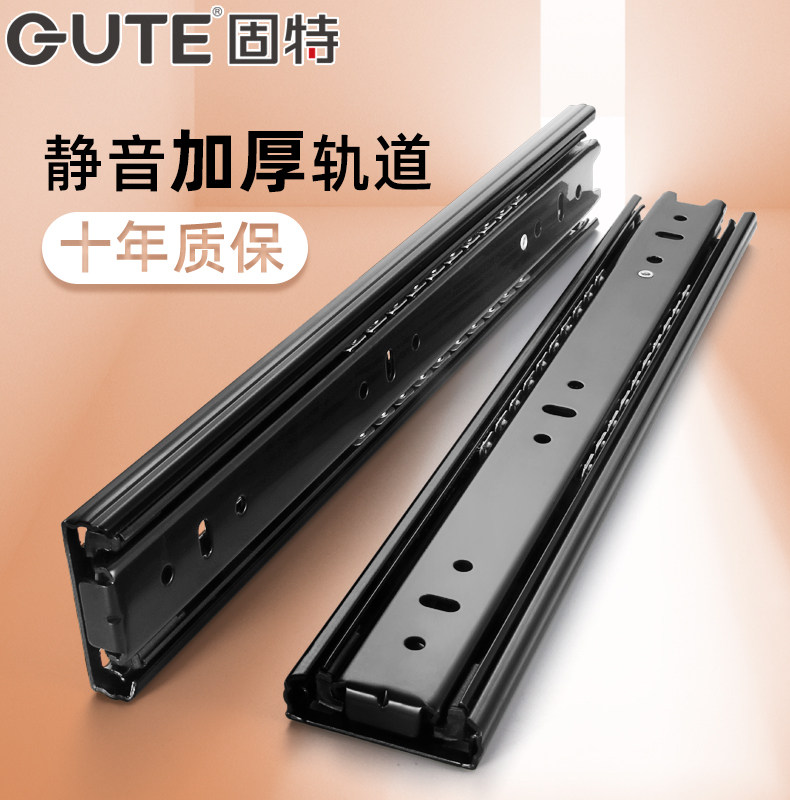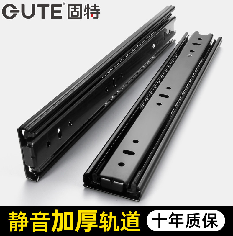 Gute drawer track Silent three-section track thickened drawer slide Three-fold guide rail Ball slide pulley