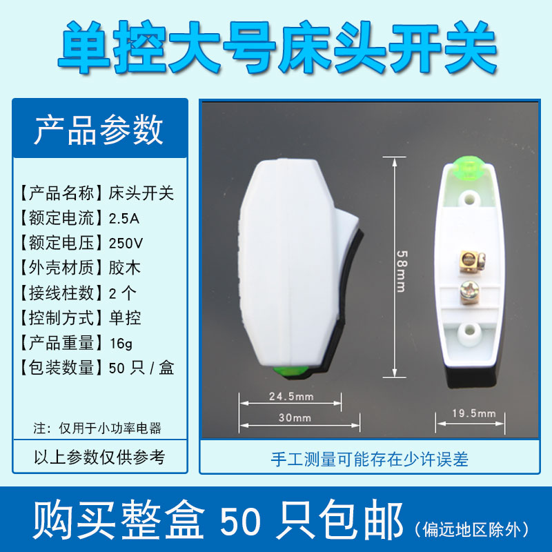 Work school headboard switch single open single contact single control home Ming-fit midway wire control hand-seesaw button small switch