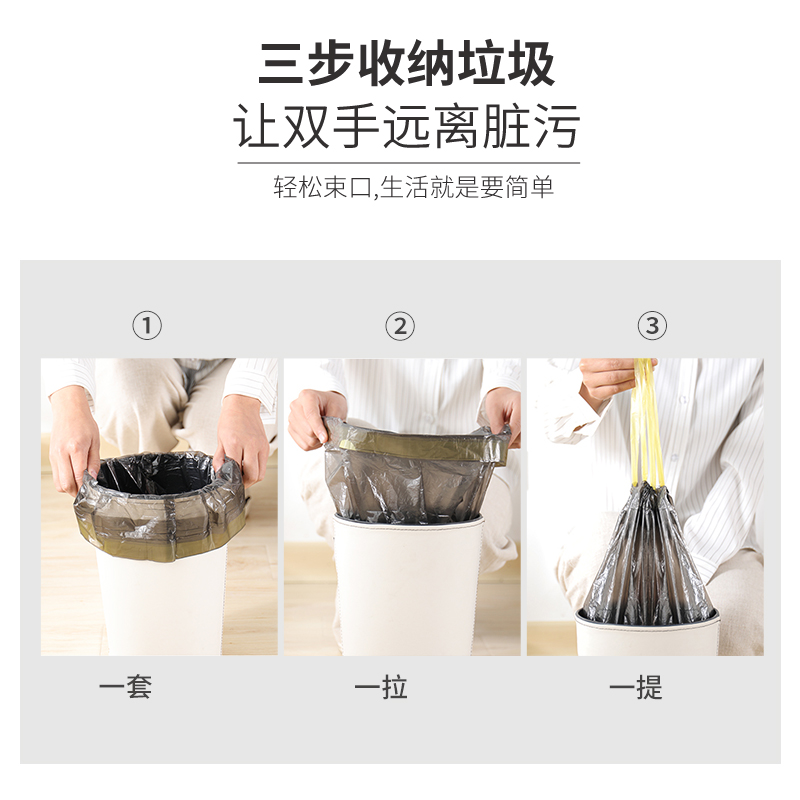 Drawstring closure garbage bag Household portable thickened trash can plastic bag Kitchen large vest garbage bag