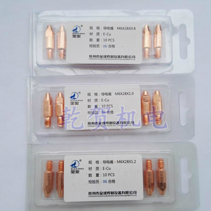 Black Wolf Gas Fidelity Welding Gun conductive nozzle 24KD II Po weld conductive tip M6 * 28 * 8 0 28 * 1 0 28 * 1 2 * 1 2 welding