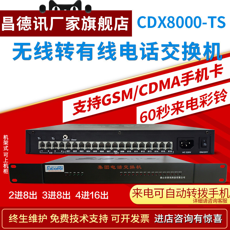 Changdexun TS 416B program-controlled telephone switch 4-in-16-out 2-in-16 TS 208 voice 2-in-8-out 3-in-8-out mobile phone card wireless to wired iron shell can be on the cabinet ring bell