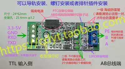 3 3V5V high speed TTL to RS485 module 5MHz isolation lightning surge automatic data flow rail copper column