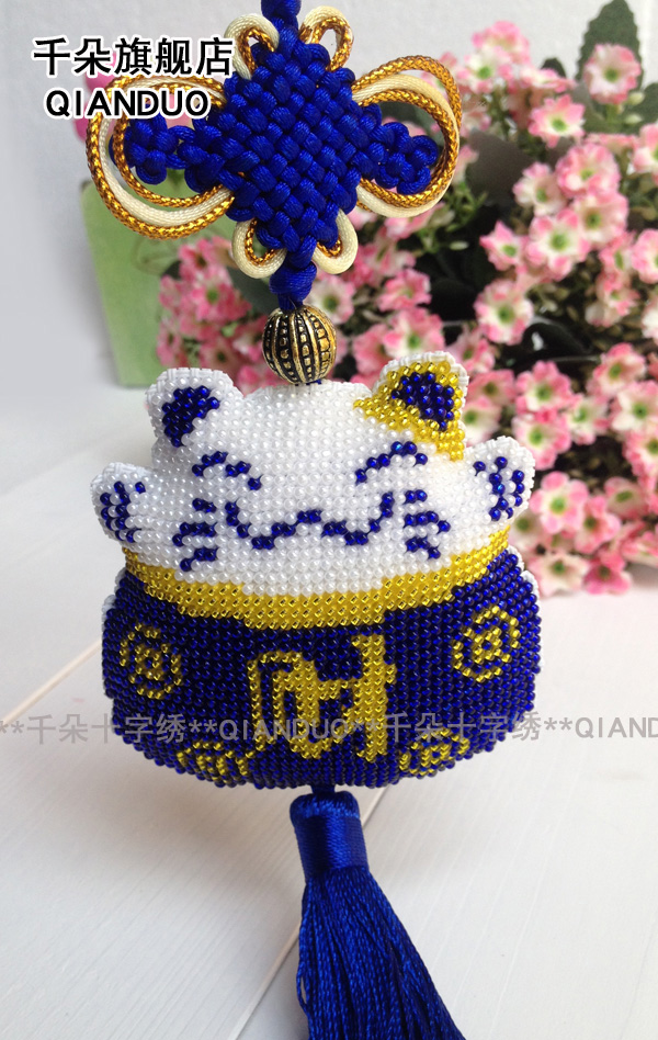 Novice cross stitch car pendant pieces self-embroidered cute cat New car pendant car hand-made personality beaded embroidery