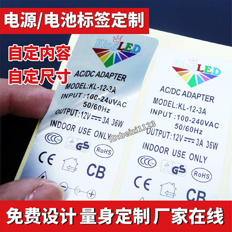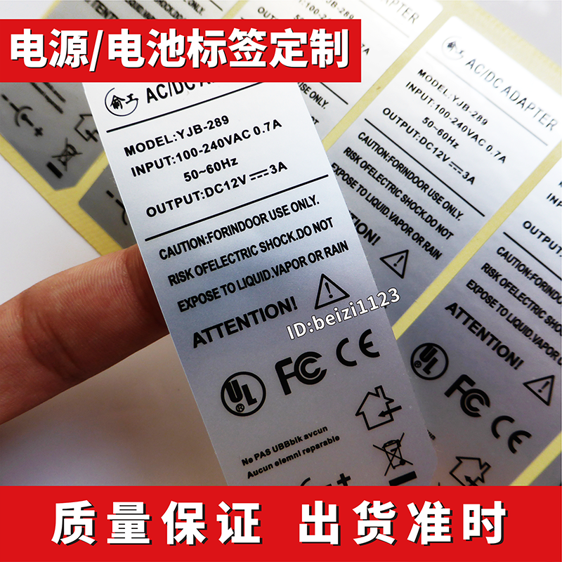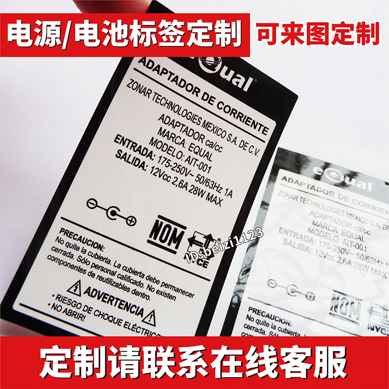 Power adapter label sticker printing custom made battery synthetic paper PVC self-adhesive dumb silver dragon PET frosted