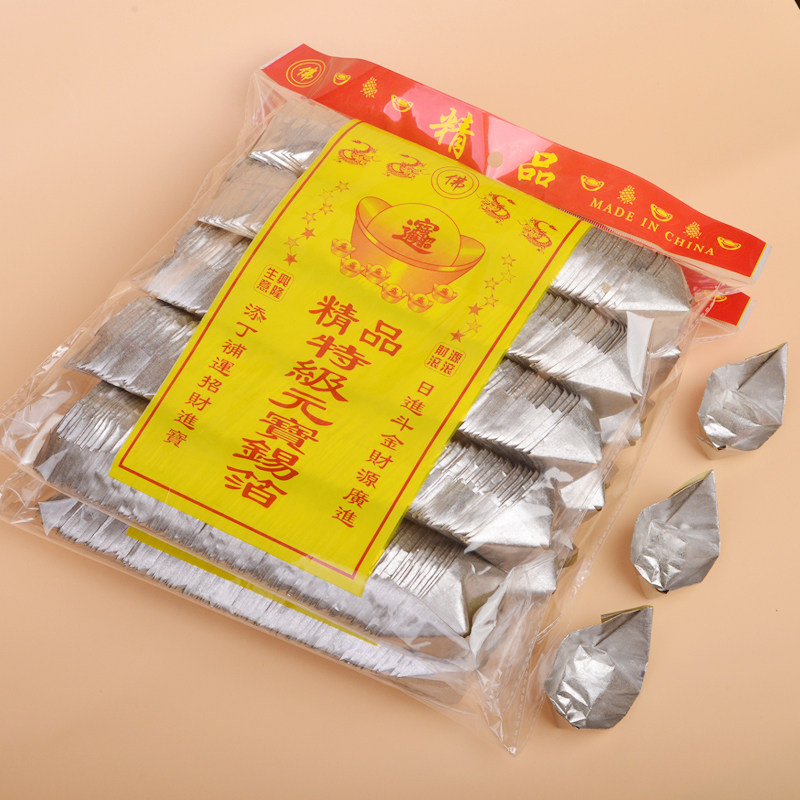 Sacrifice supplies 1000 large Shaoxing tin foil yuanbao tin foil burning paper paper money silver yuanbao hand folded