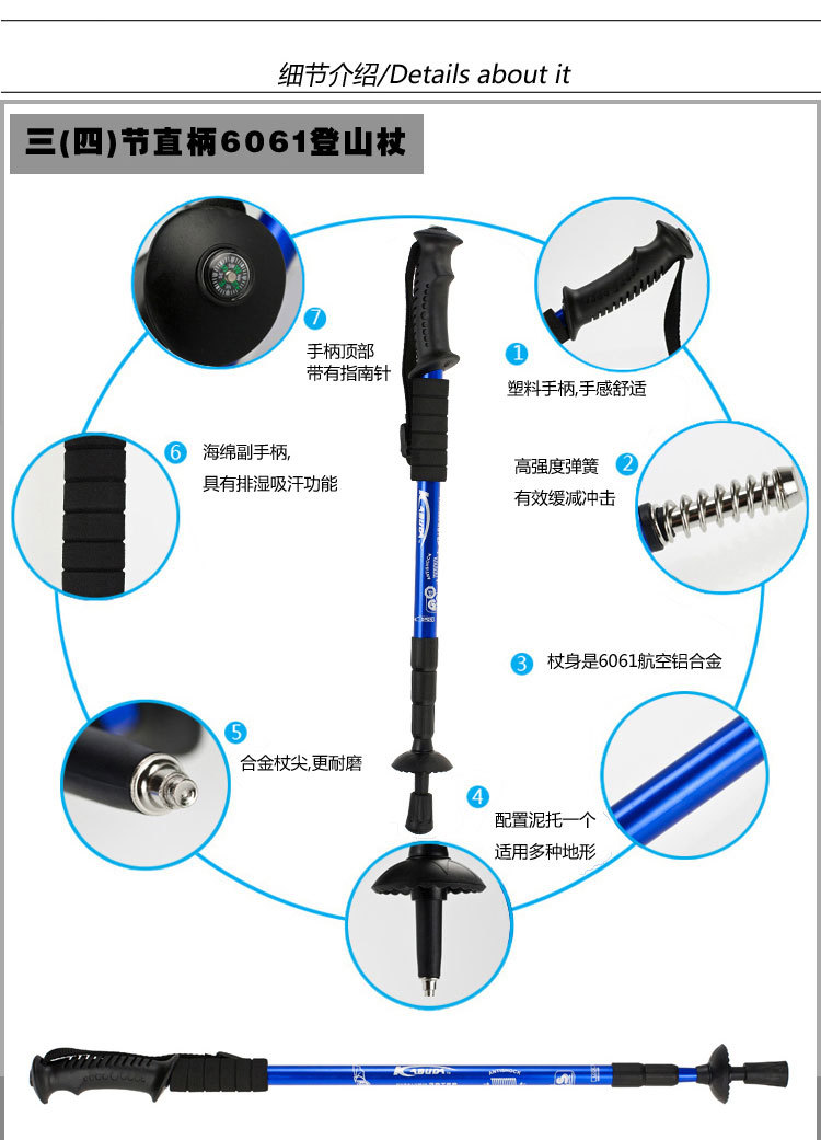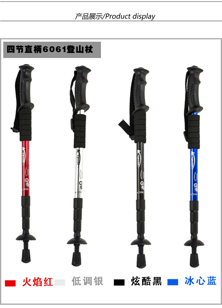 New outdoor camping off-road Abda shock absorber special T-shaped straight handle four-section hiking stick walking stick walking stick