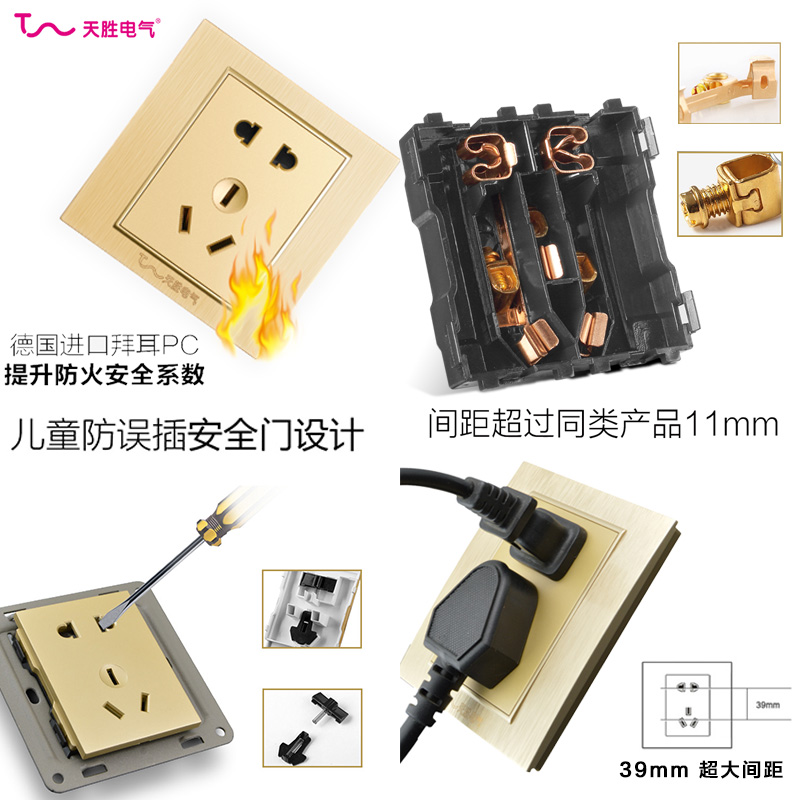 Socket Power outlet switch Socket Panel socket Wall switch Two holes Five socket holes Seven holes Champagne gold