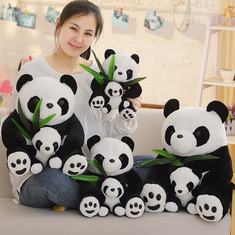 National Treasure Giant Panda Stuffed Toy stuffed with bamboo leaves Small mother and son Panda doll holding pillow cloth doll doll Chengdu-Taobao