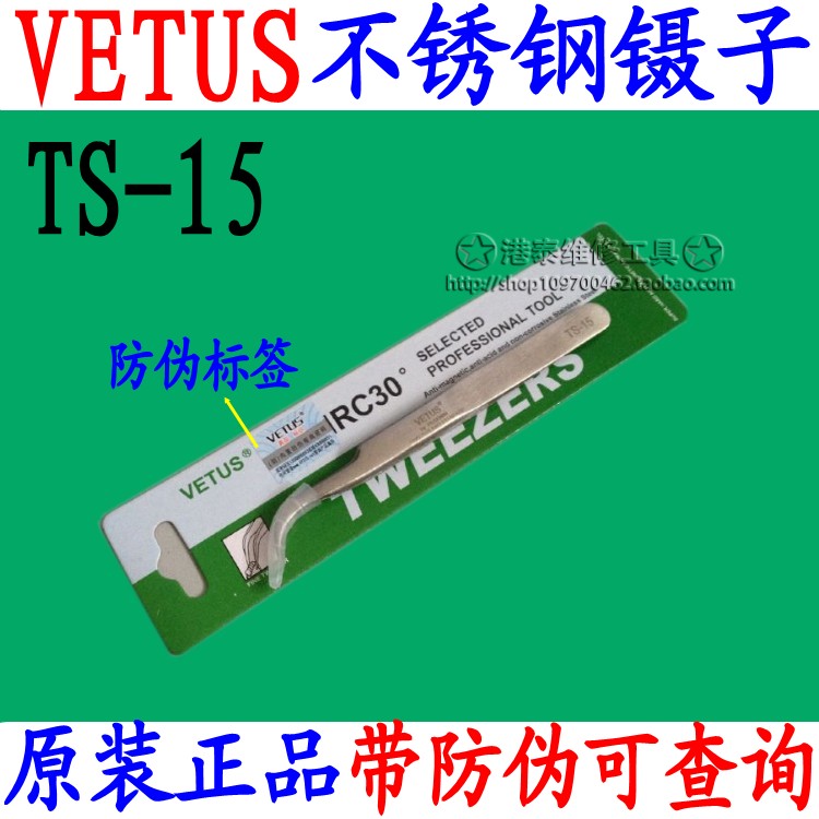 VETUS Anti-magnetic Tweezers High elastic Precision Stainless steel Pointed Elbow Tweezers TS10-15