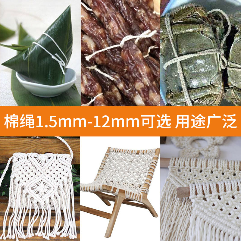 cotton rope cord coarse cotton thread rope white wire group full cotton wrap zongzi thread hanging blanket hand woven three strands of absorbent fine rope