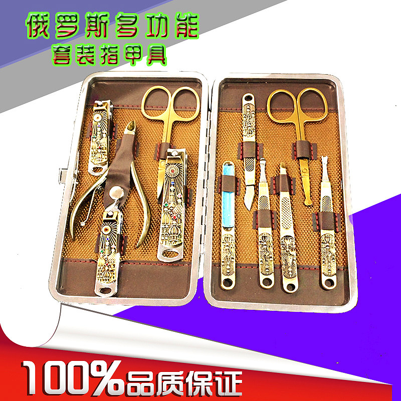 Russian Castle Pattern Nail Set Diamond Bronze 11 Pieces Gift Faux Leather Nail Clipper Nail Art