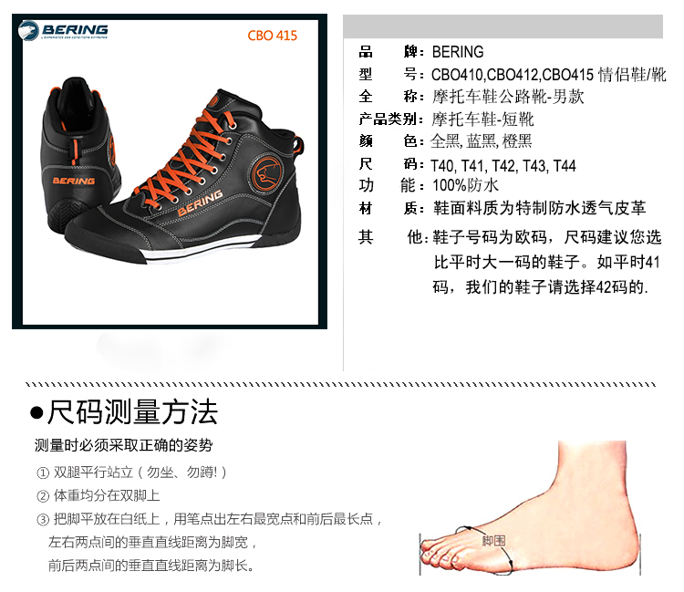 France's new imported BERING waterproof shoes casual couples shoes black 410 motorcycle riding protective short boots 618