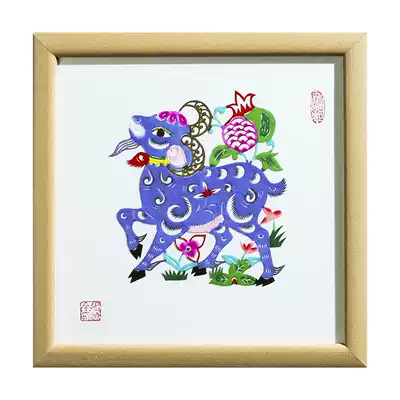 Chinese characteristics of the year of the ox paper-cut finished 12 zodiac sheep hand-cut decorative painting Chinese style gifts to foreigners