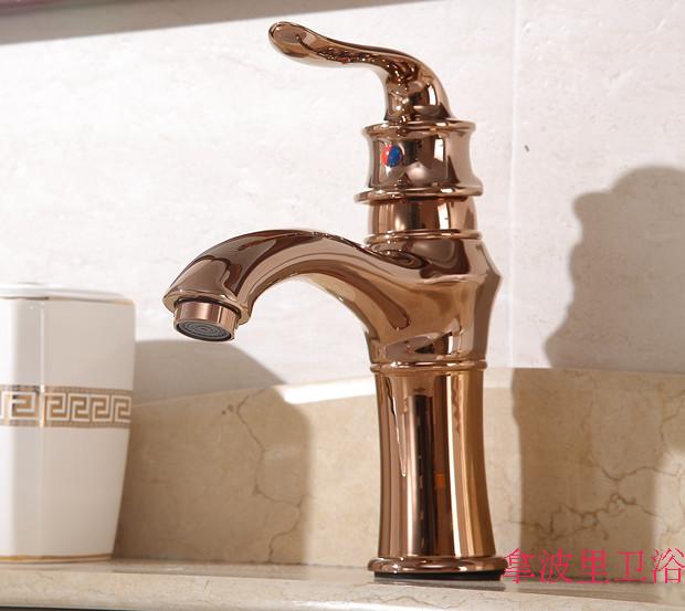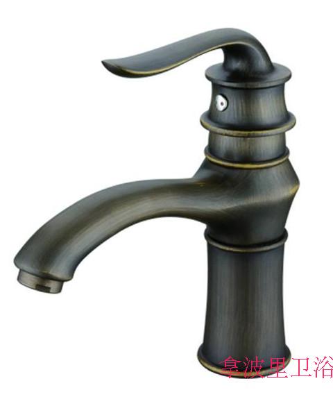 Golden single to single-hole hot and cold water-mixing classical surface basin tap antique bath cabinet tap with pori 2102
