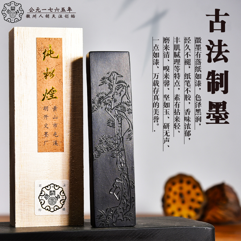 Pure pine smoke one two two two authentic Tunxi Hu Kaiwen Hui ink ingot ink stick four treasures ink calligraphy and painting ink stick