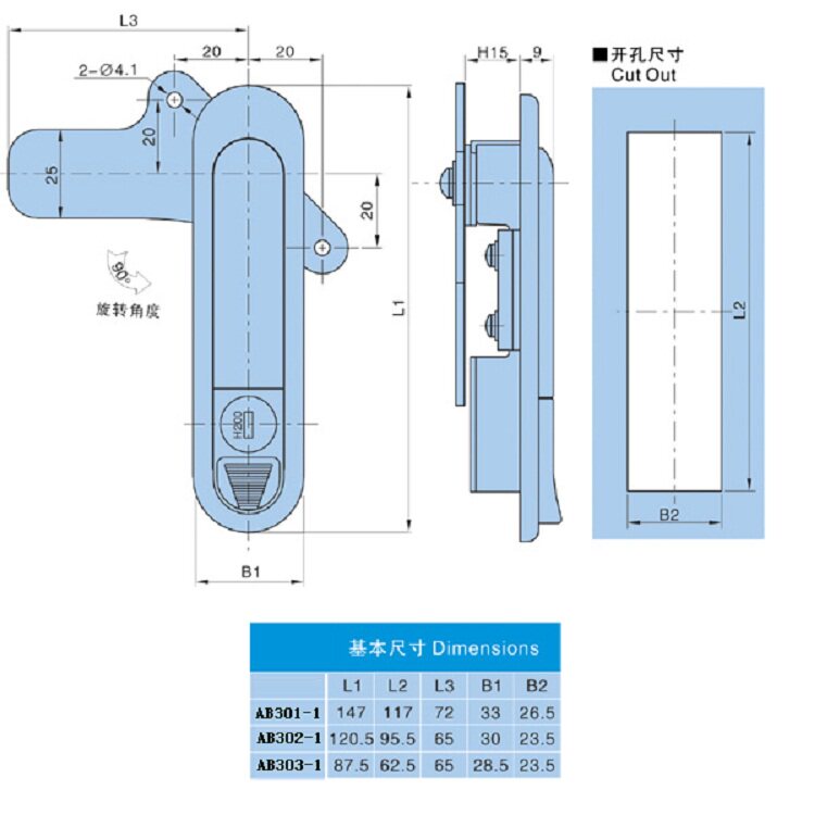 Factory direct sale AB301-1 electric box lock AB302-1 cabinet lock ab303-1 plane lock